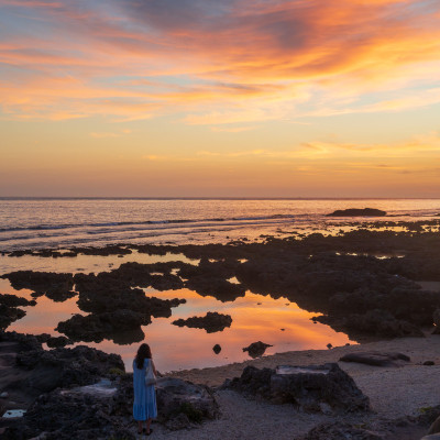 萬里桐海岸夕照。中國台灣屏東縣恆春鎮萬里桐魚村