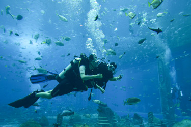 亞特蘭蒂斯度假酒店,360度超大水族箱內潛水。海南三亞海棠區。