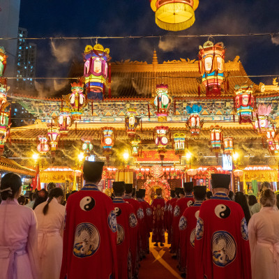 嗇色園黃大仙祠舉行的七姐寶誕暨園遊晚會。中國香港