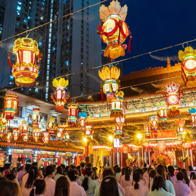 嗇色園黃大仙祠舉行的七姐寶誕暨園遊晚會。中國香港
