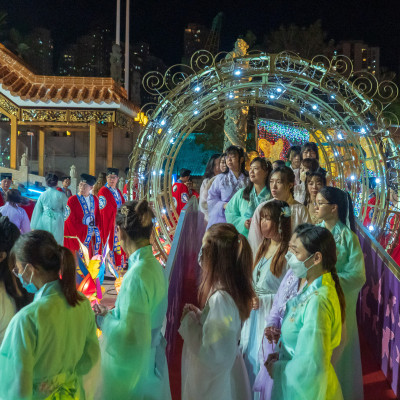嗇色園黃大仙祠舉行的七姐寶誕暨園遊晚會。中國香港