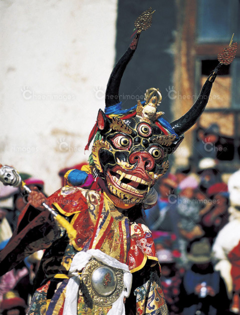 地狱使者,噶丹松赞林寺的喇嘛穿上传统服饰跳神舞。云南迪庆藏族自治州香格里拉