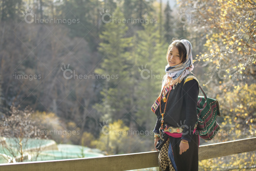 神仙池景區,藏族女孩。四川阿壩州九寨溝