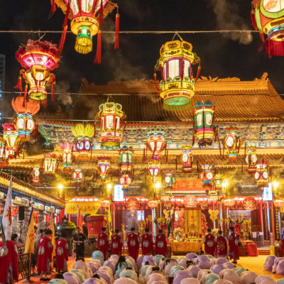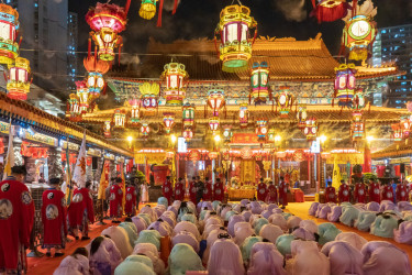 嗇色園黃大仙祠舉行的七姐寶誕暨園遊晚會。中國香港